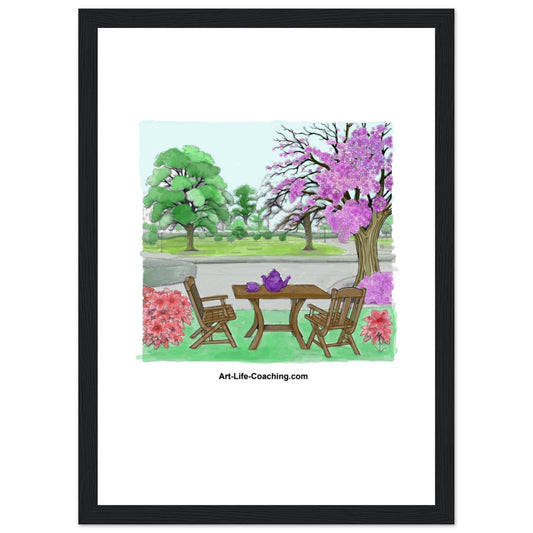 Art-Life-Coaching: Outside With a Cuppa - Semi-Glossy Paper Wooden Framed Poster